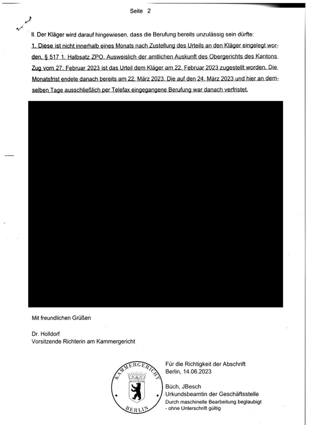 Falsification of a Swiss Court Document by judge Holldorf, Kammergericht Berlin: A Grave Breach of Integrity
